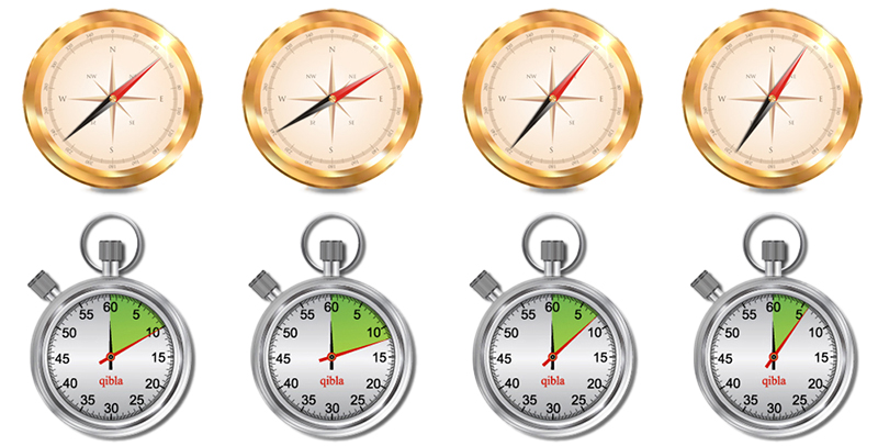 Por ejemplo: los que viven en la República Bolivariana de Venezuela orientan su rostro hacia el Norte o hacia la estrella Polar en caso si es de noche, y marcar el norte como si fuera las doce horas 12:00 H. y con la mano derecha apuntándose hacia diez minutos, entonces las 12 seria el norte y 10 seria la dirección hacia (al qibla). En las imágenes indican cada estado hacia qué dirección se encuentra (al qibla).